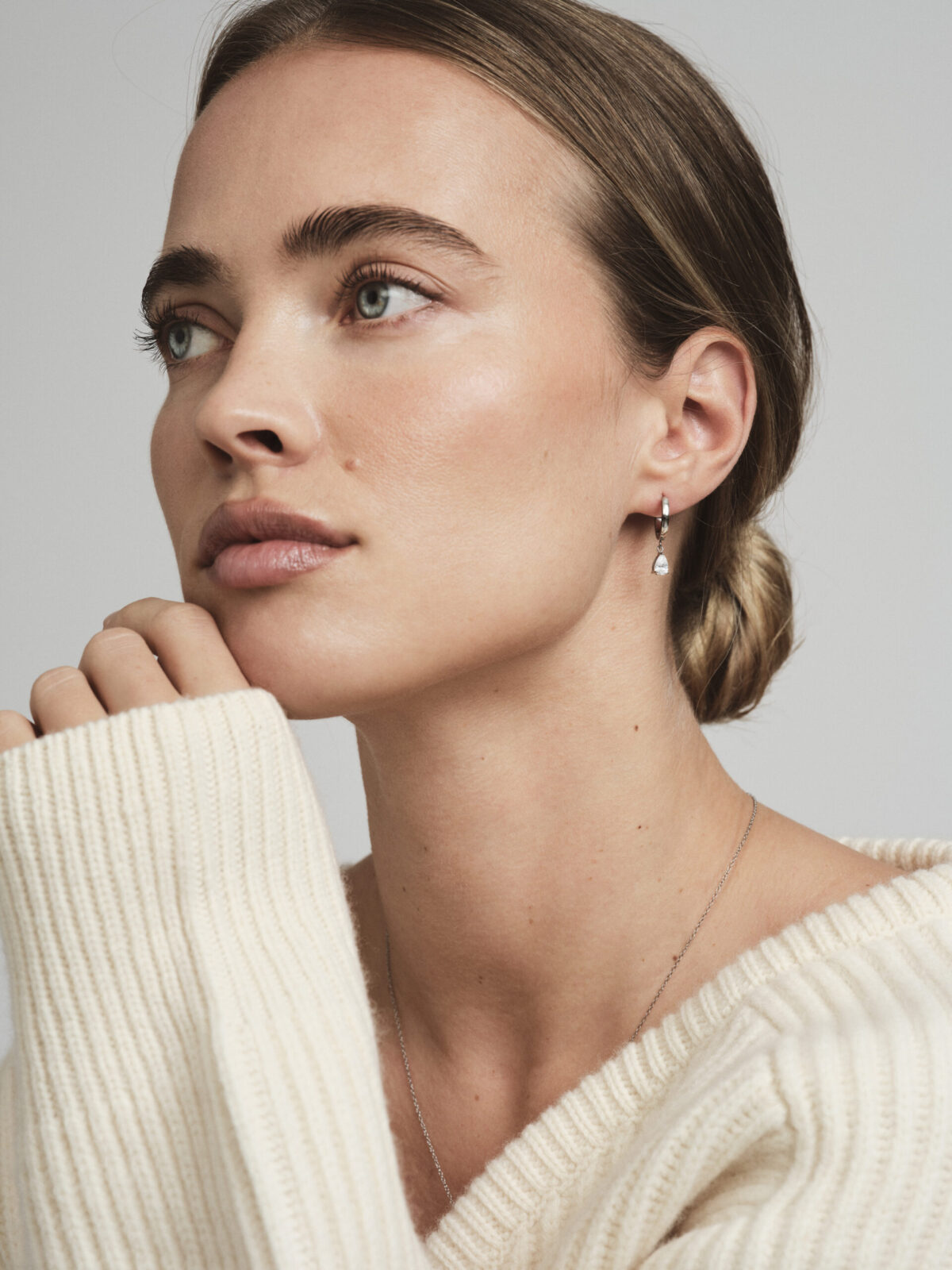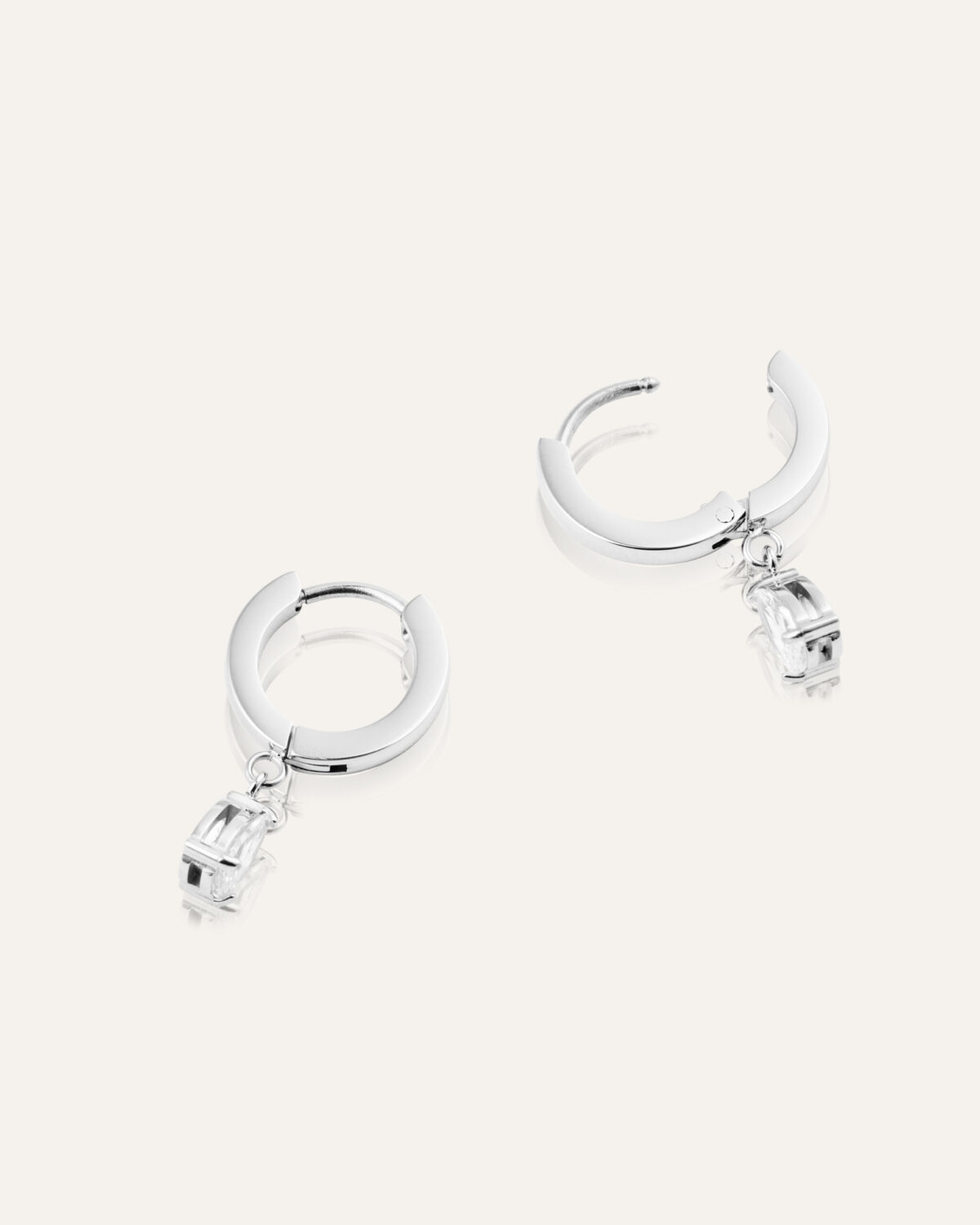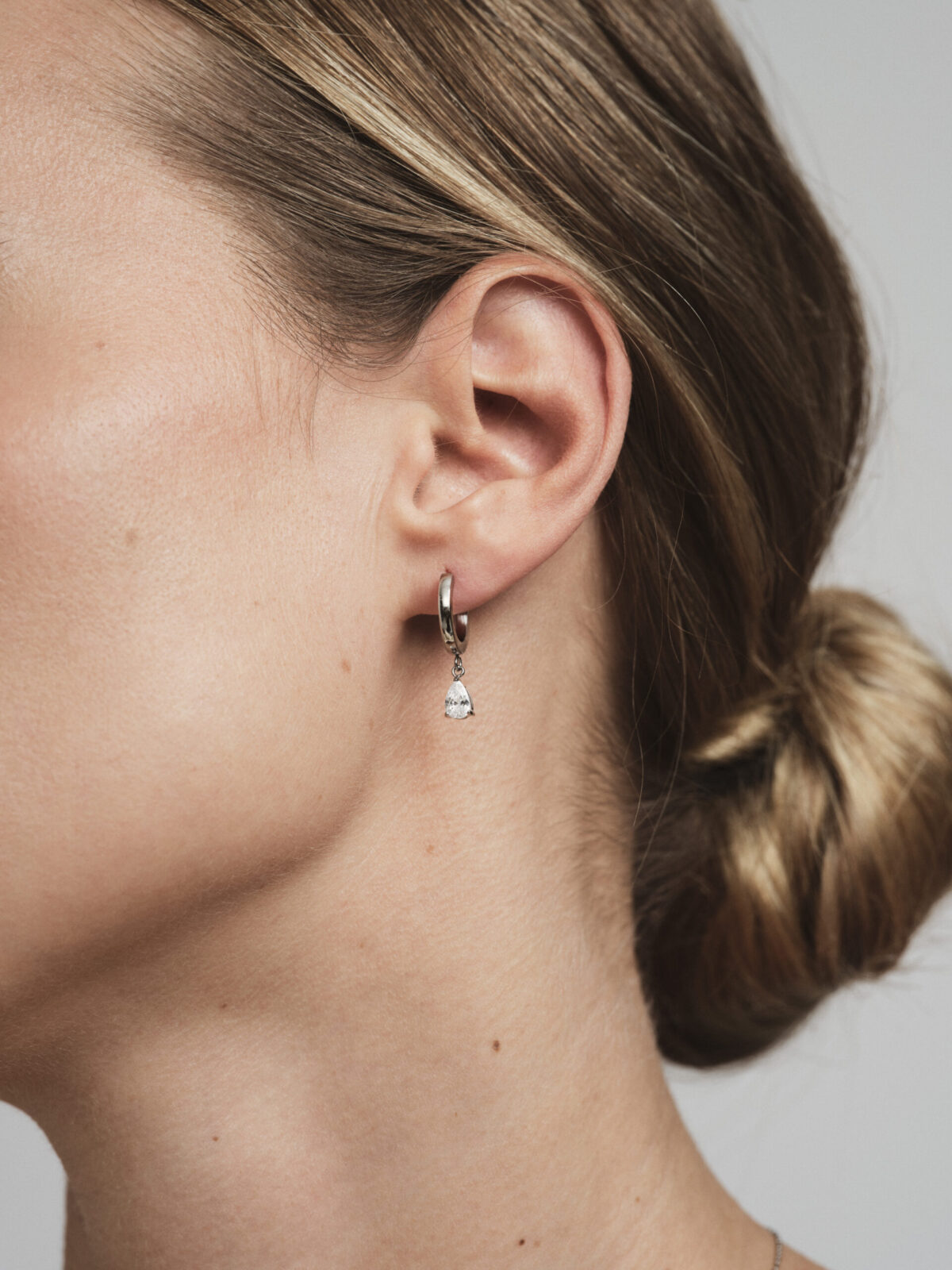 Belle Silver Hoops är en modern tolkning av klassiska hoops. Örhängena är tillverkade i hållbart stål vilket gör de stilrena, slitstarka och säkerställer deras lyster. Örhängenas vita stenar och tidlösa ramar gör dem till en perfekt accessoar för alla tillfällen. Örhängena är även vattentåliga så att du kan bära dem varje dag.