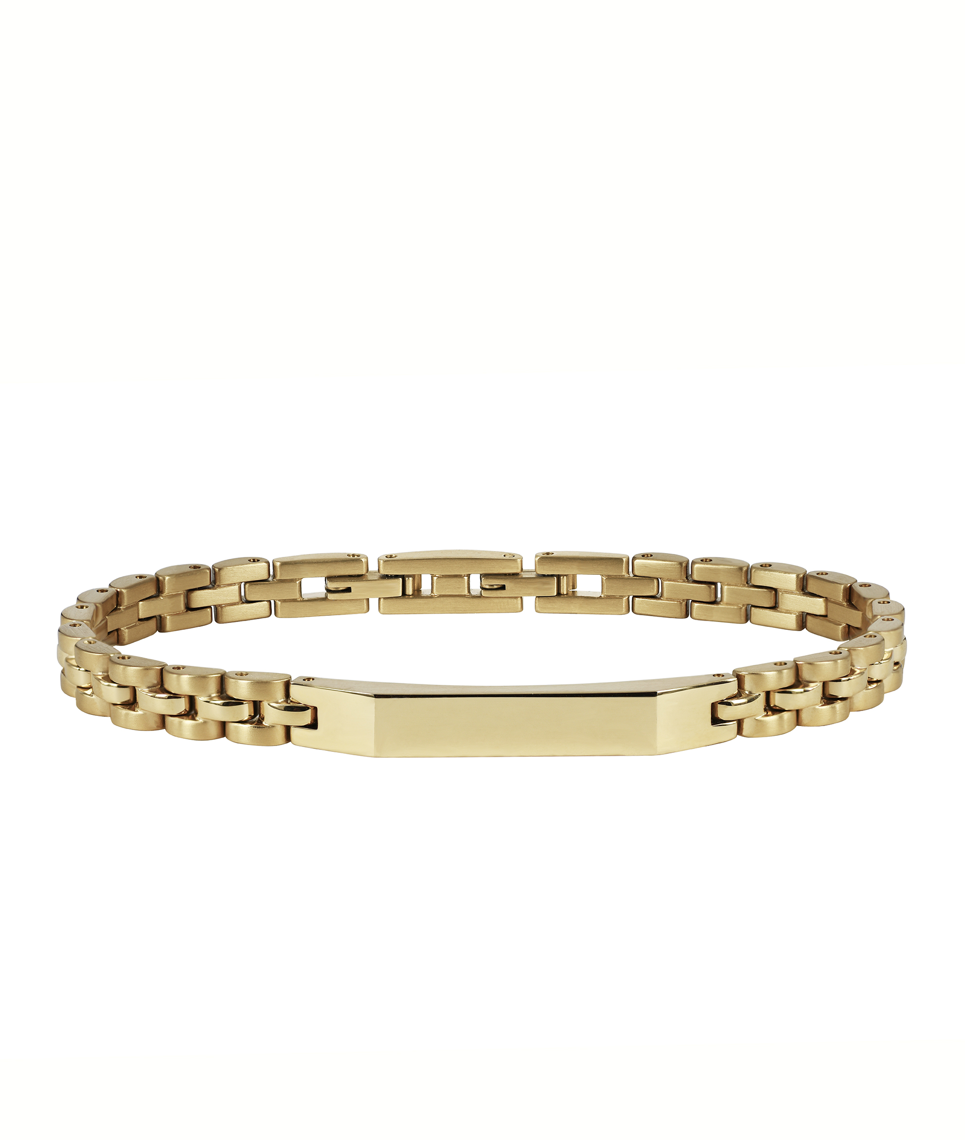 Armbandslänk i 14 karat guldpläterat kirurgiskt rostfritt stål. Matt finish med blanka detaljer.