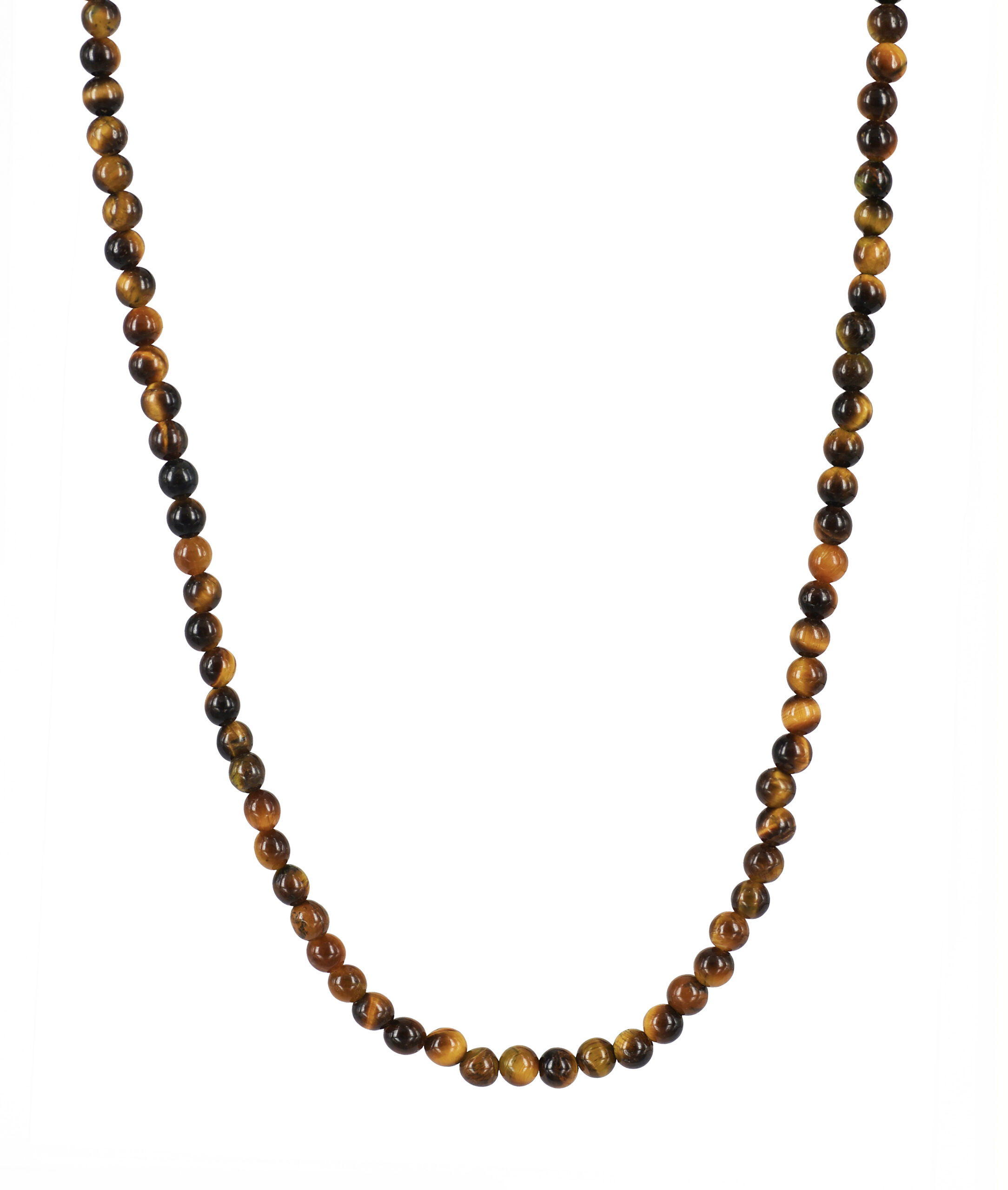 Kulhalsband av ädelstenar från Tigeröga. Detaljer i kirurgiskt rostfritt stål.