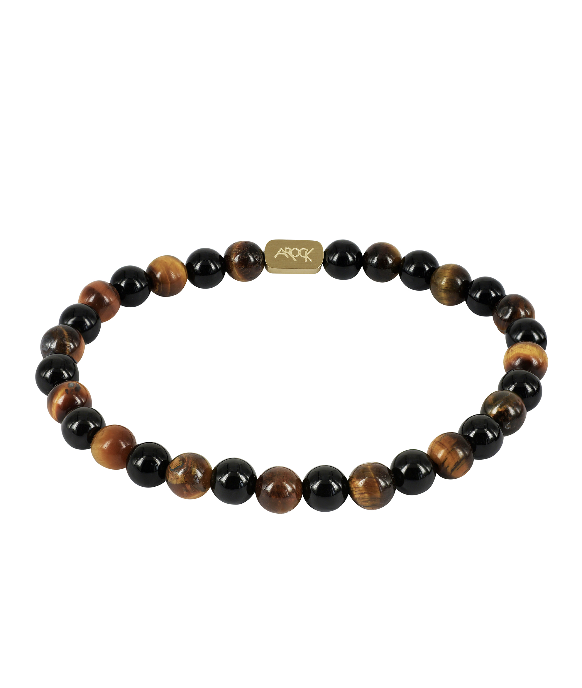 Elastiskt kularmband av ädelstenar från Tigeröga och Onyx. Detaljer i kirurgiskt rostfritt stål.