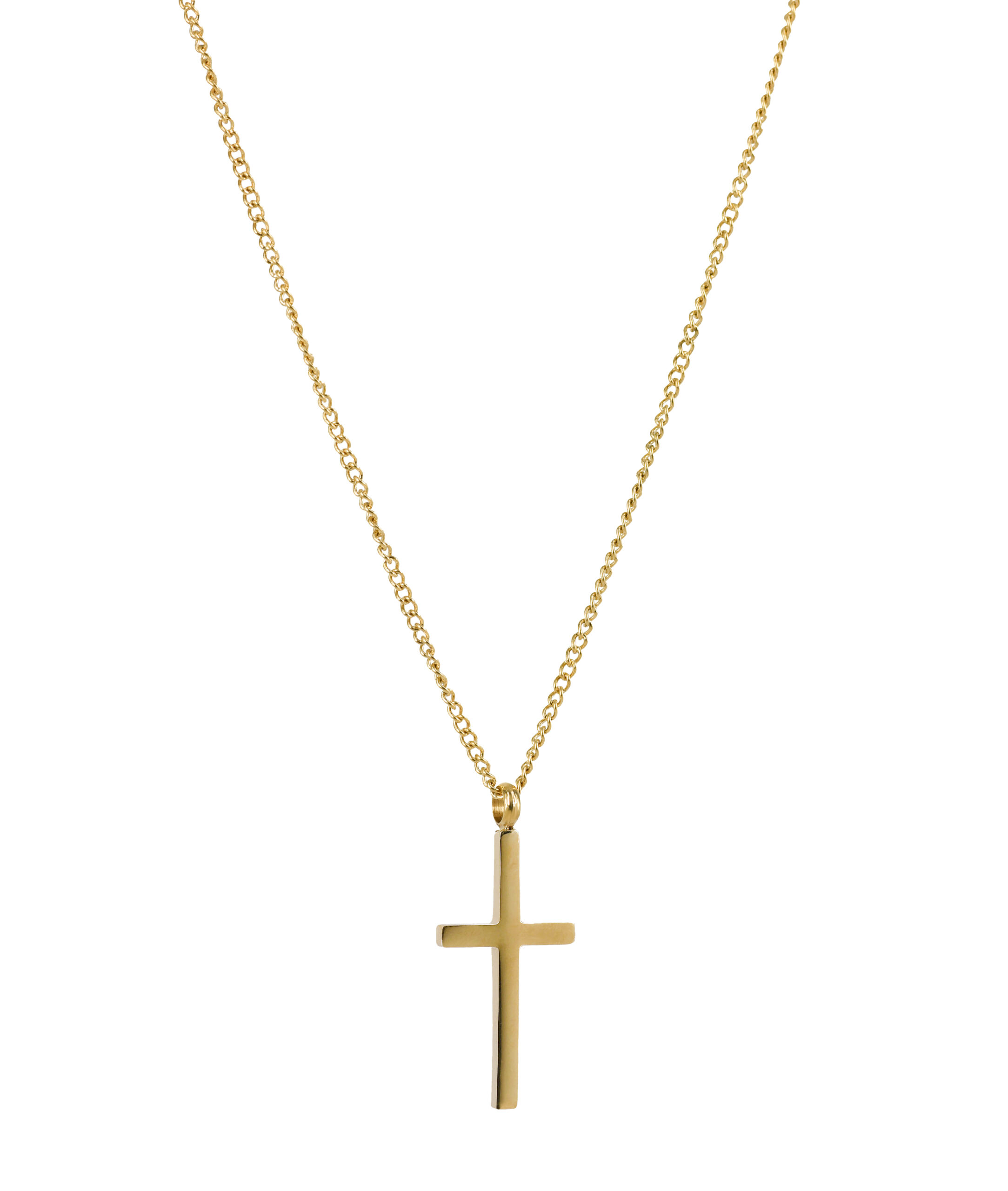 Nätt halsband av en pansarlänk och ett hänge i 14 karat guldpläterat kirurgiskt rostfritt stål med en matt- och en polerad sida. Halsbandet kan göras längre eller kortare, beroende på kundens preferens.