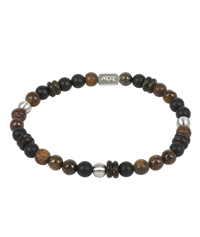 Elastiskt kularmband av ädelstenar från Bronzit och Onyx. Detaljer i matt finish av kirurgiskt rostfritt stål.