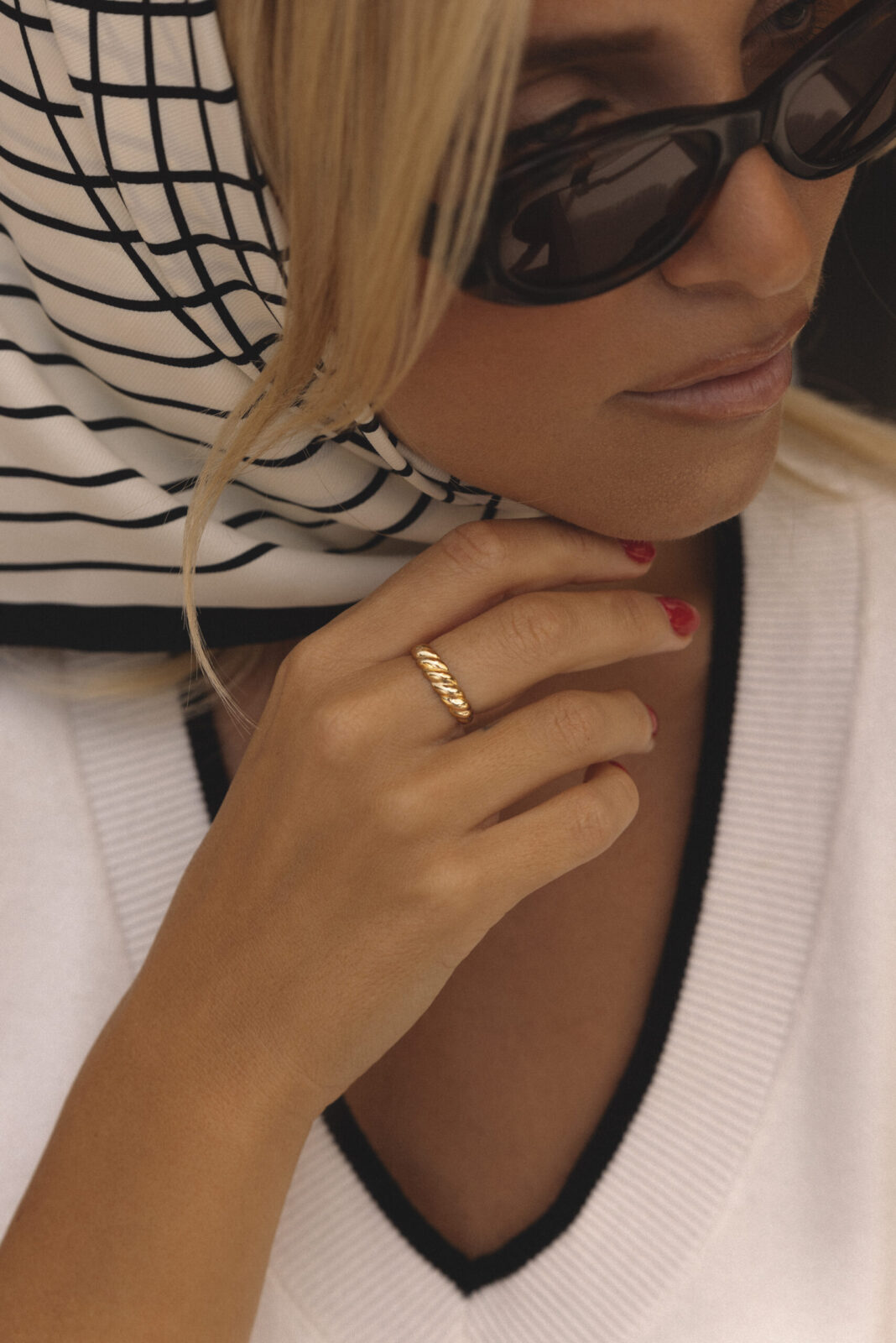 Elsa Ring är en stilren räfflad ring som gör sig perfekt tillsammans med Karolina Ring på samma finger – en kombination som utstrålar subtil elegans!