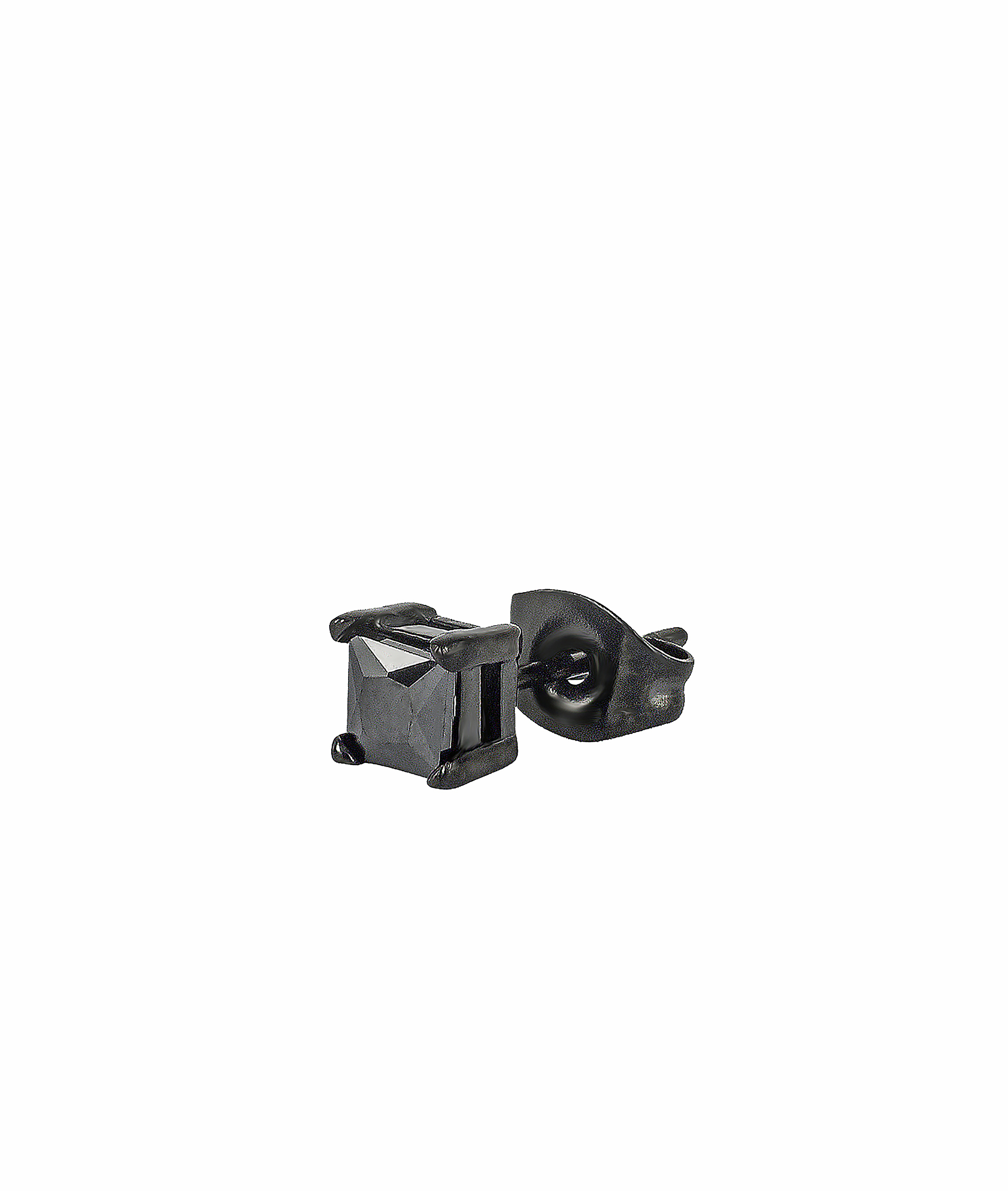 Örhängen på stift i kirurgiskt rostfritt stål med en svart TiCN-plätering (Titanium Carbonitride) och en svart kubisk zirkonia kristall.
