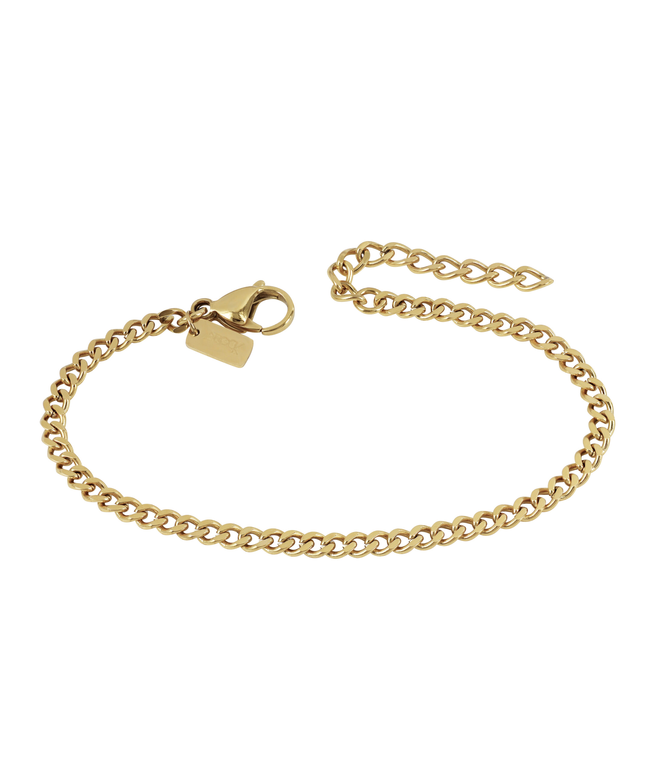 Klassisk pansarlänk i 14 karat guldpläterat kirurgiskt rostfritt stål. Polerad finish.