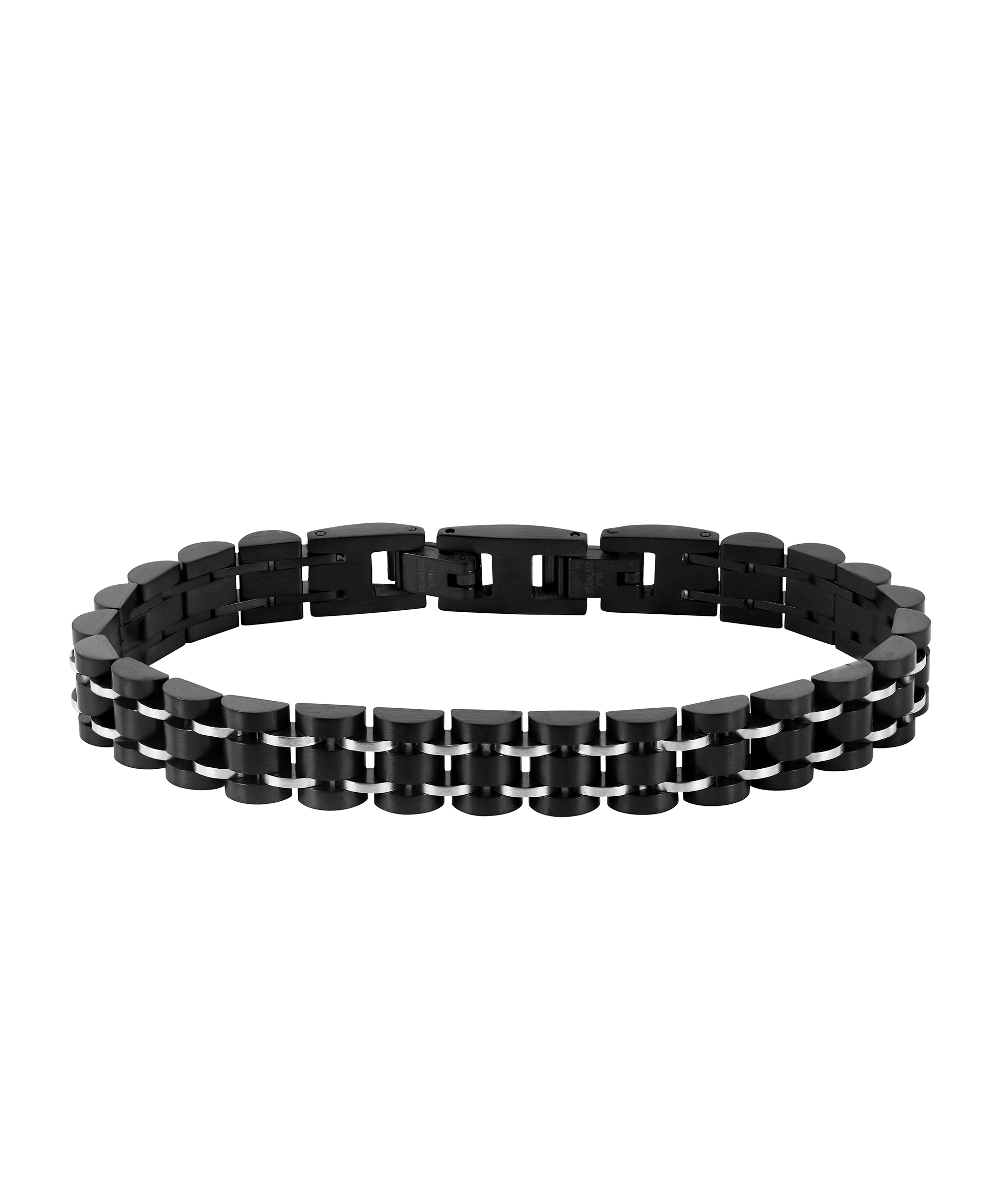 Armbandslänk i kirurgiskt rostfritt stål med en svart TiCN-plätering (Titanium Carbonitride). Matt finish med blanka detaljer.