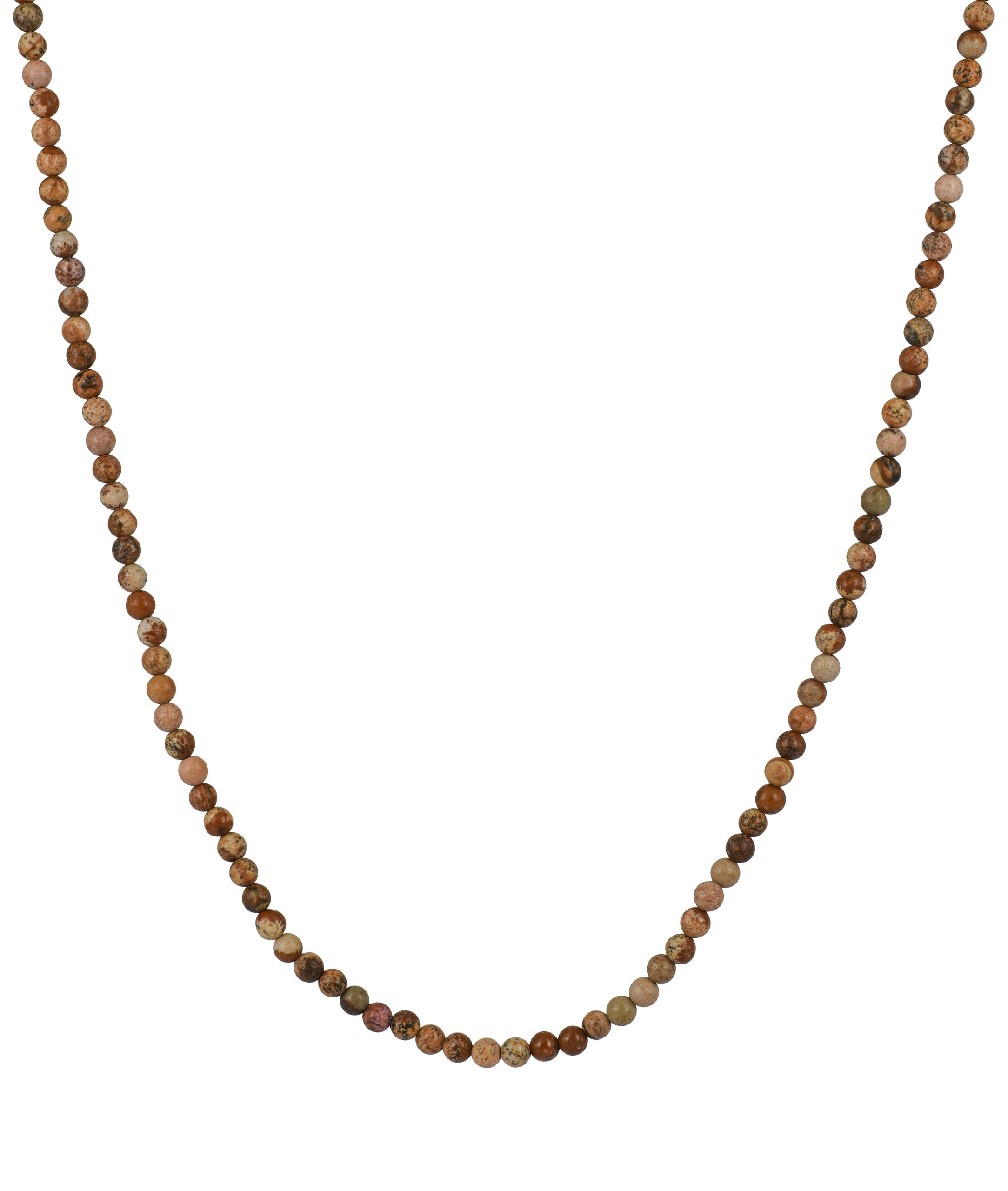 Kulhalsband av ädelstenar från Bronzit och Picture Stone. Detaljer i kirurgiskt rostfritt stål. Halsbandet har en matt finish.