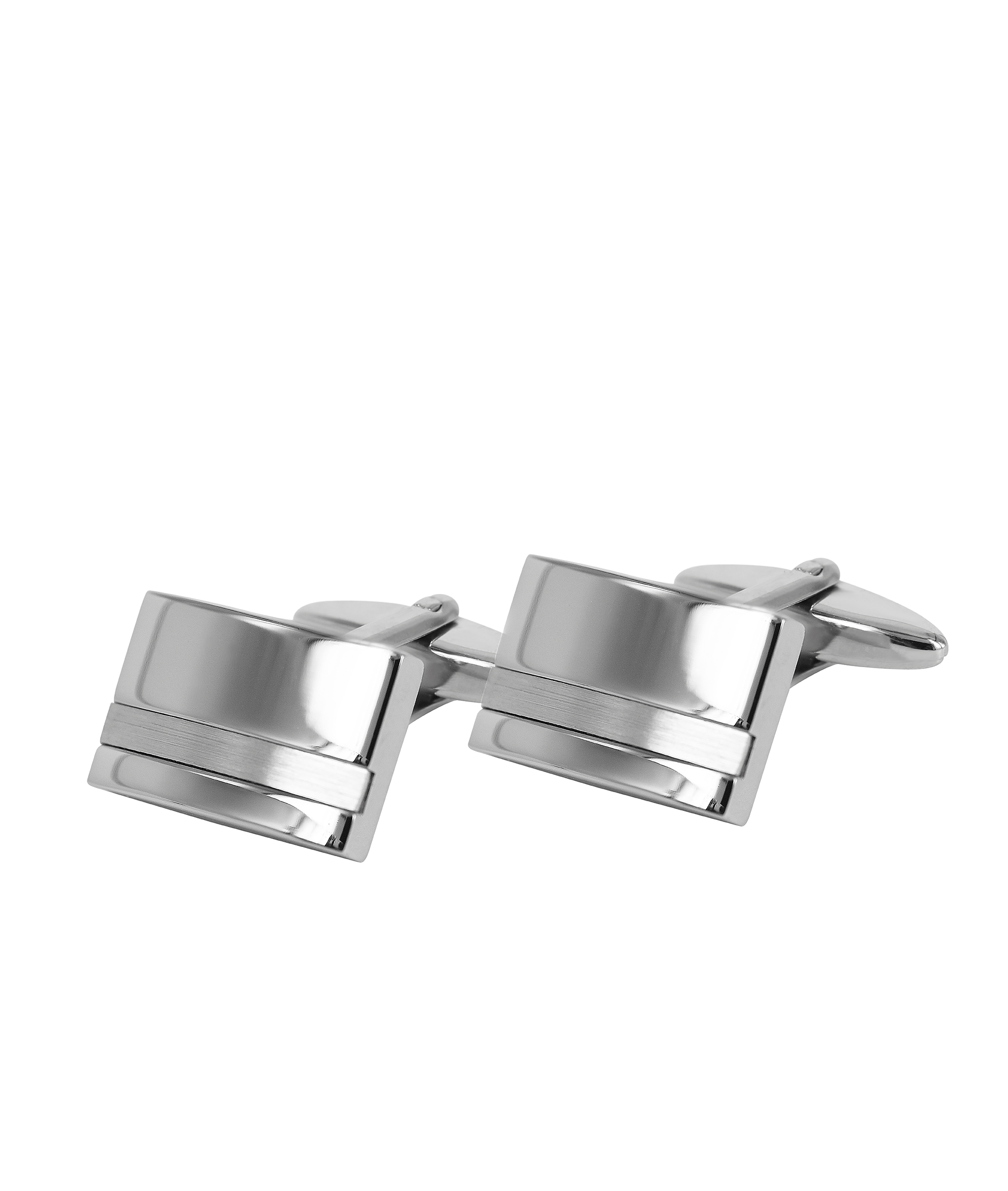 Manschettknappar tillverkade av kirurgiskt rostfritt stål. Polerad finish med matta detaljer.
