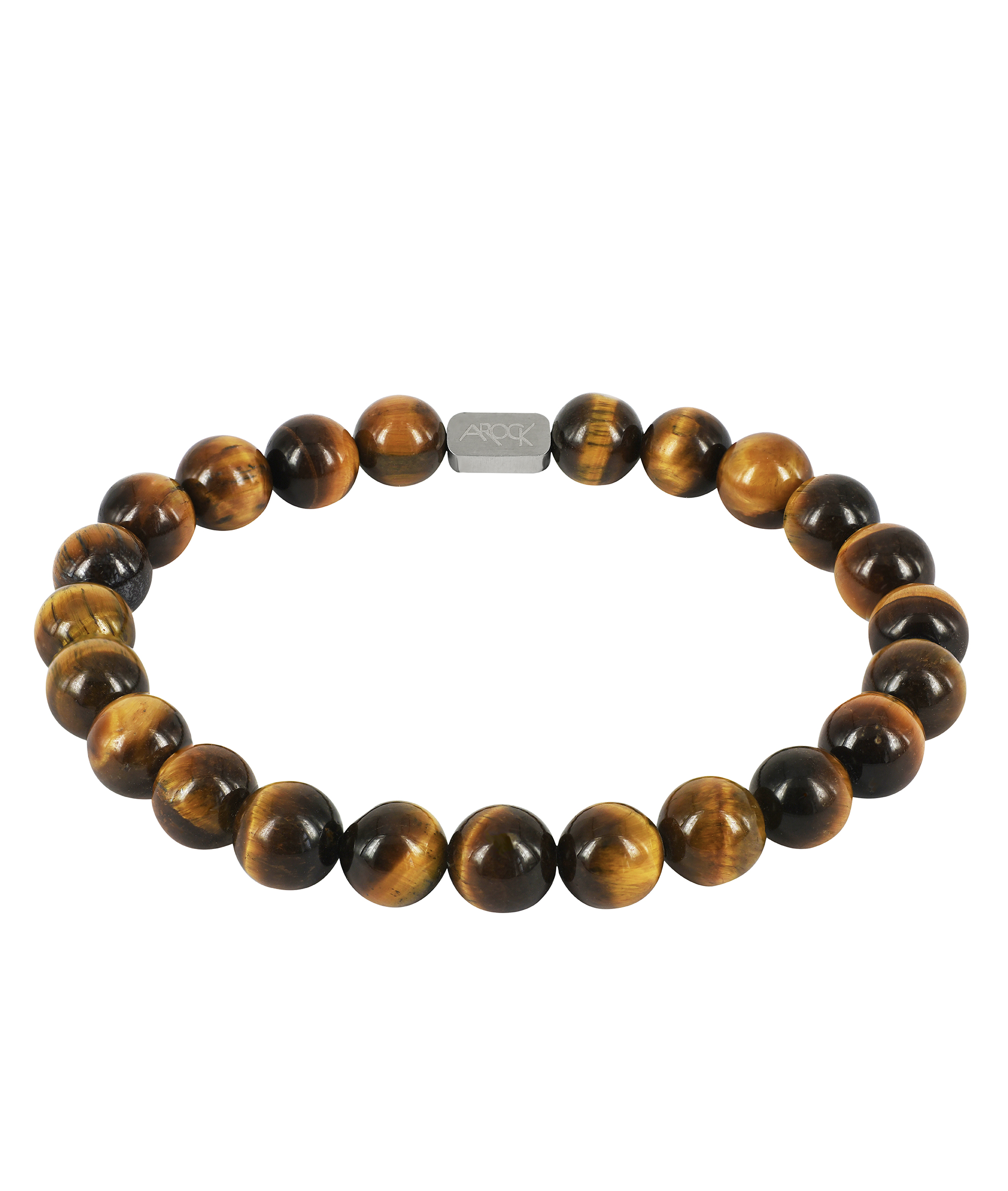 Elastiskt kularmband av ädelstenar från Tigeröga. Detaljer i kirurgiskt rostfritt stål med matt finish.