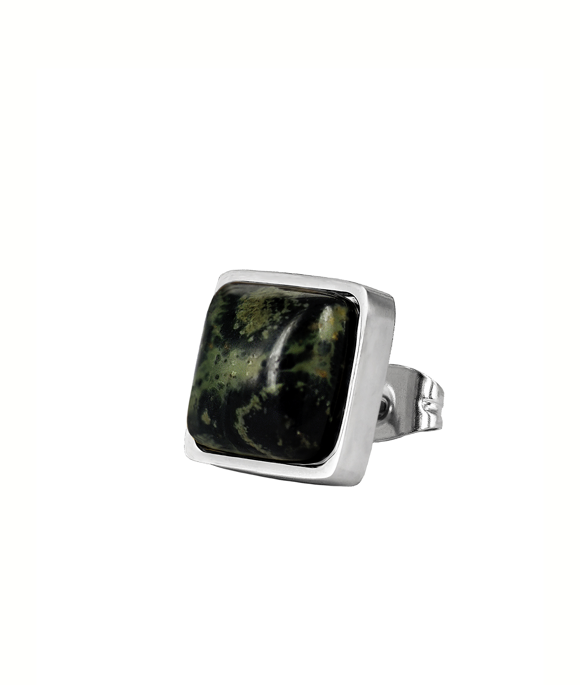 Örhängen på stift i kirurgiskt rostfritt stål med en ädelsten av Grön Emperor.