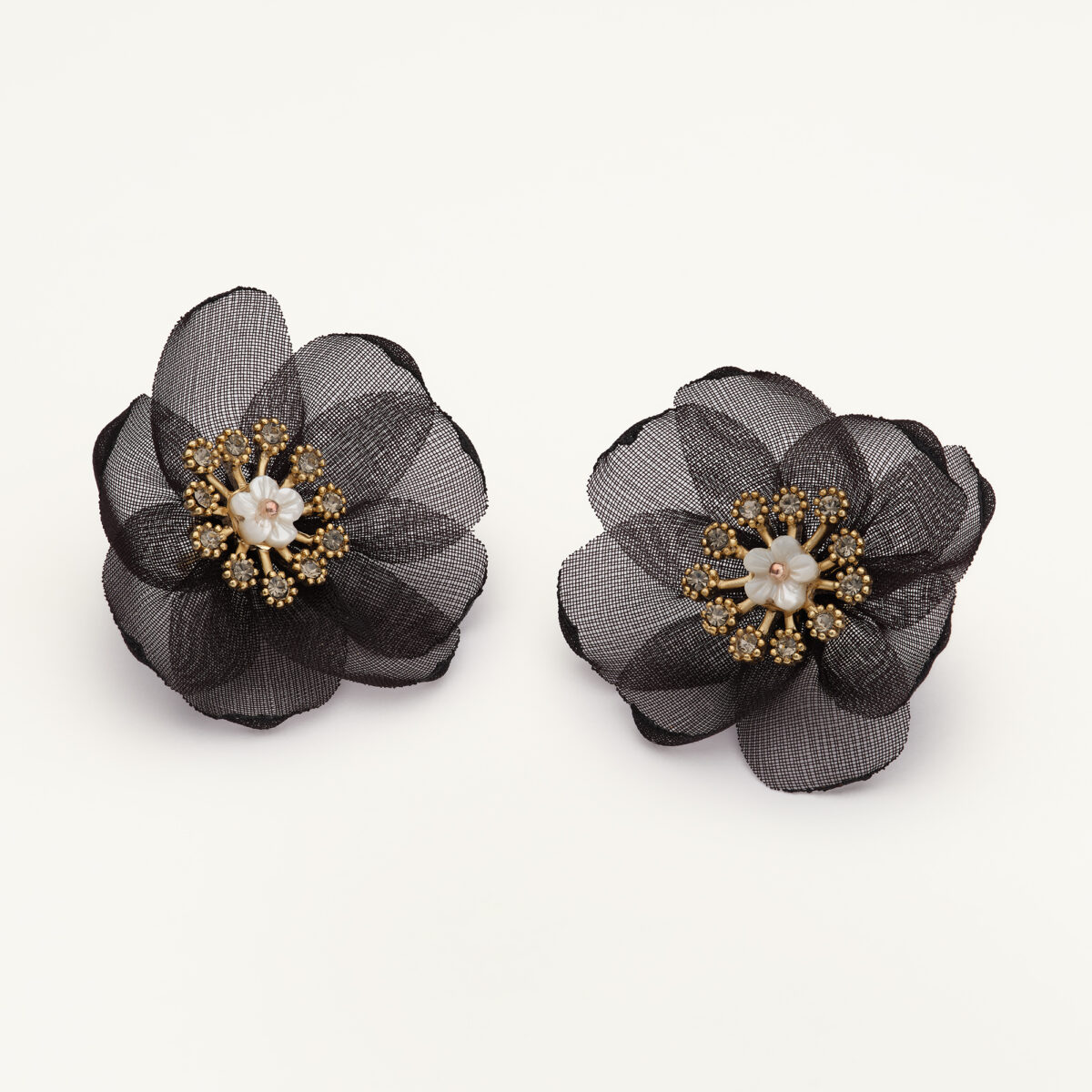 Organza botanical earrings – Black