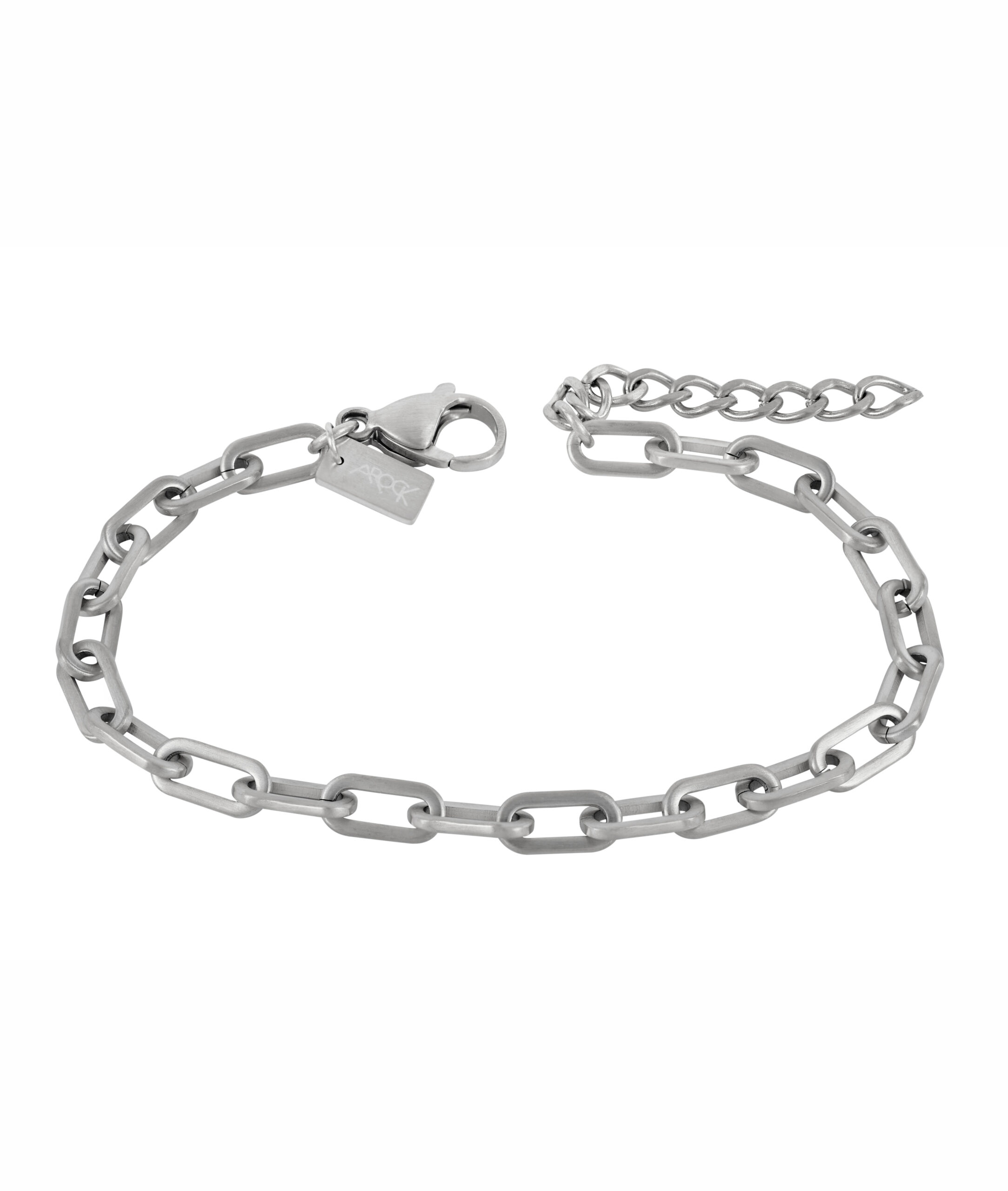Länk av platta, ovala ringar i kirurgiskt rostfritt stål. Matt finish.