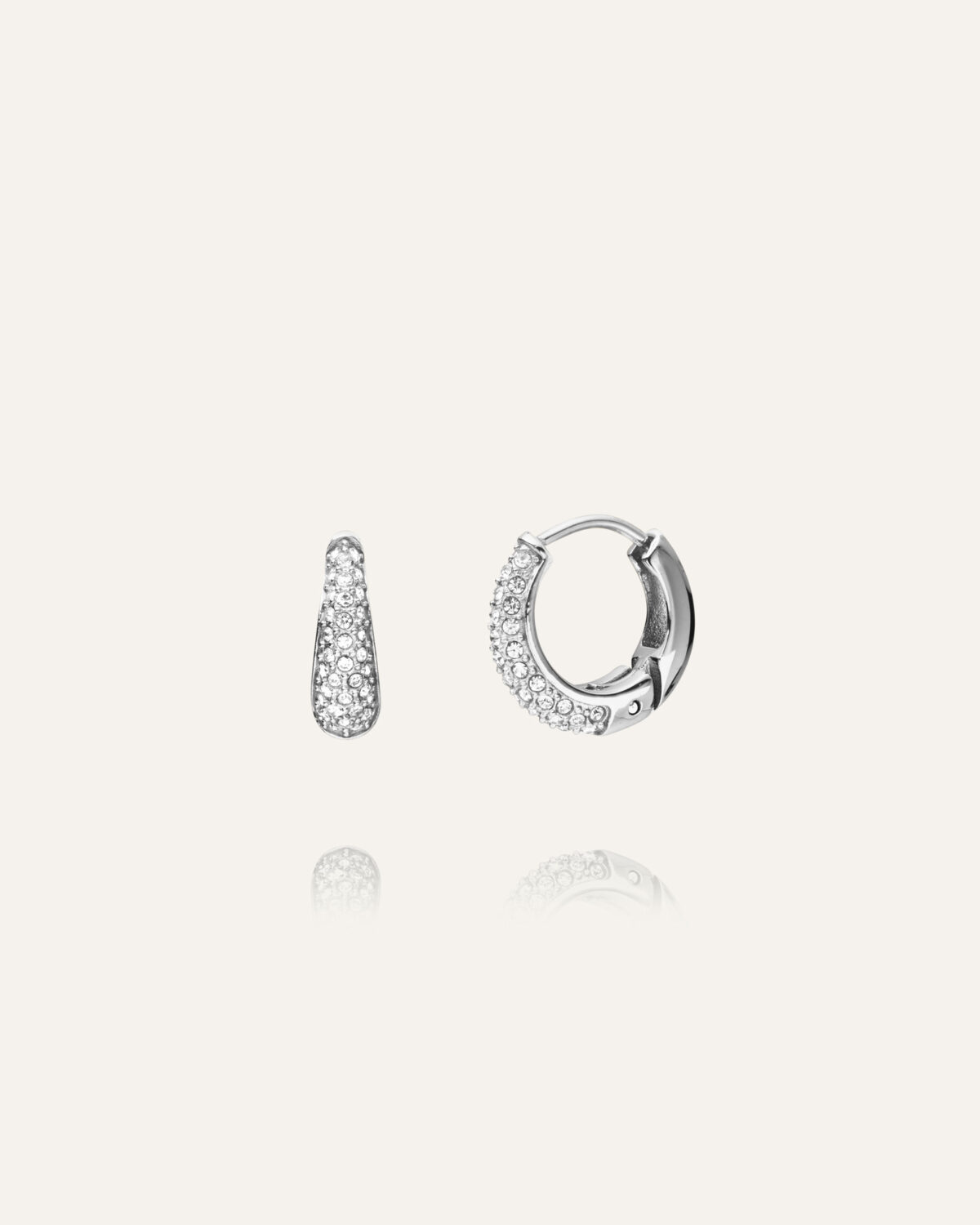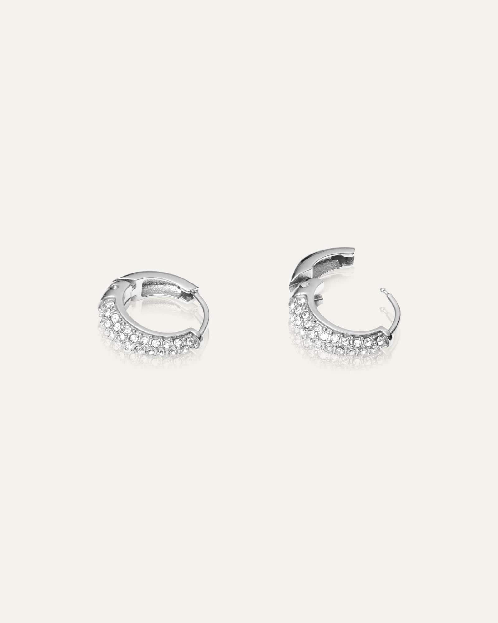 Upptäck Pavé Precious Small Hoops, små hoops utsmyckade med gnistrande vita Cubic Zirconia-stenar. Dessa örhängen utstrålar lyx och sofistikation, perfekta för att förhöja varje outfit med tidlös elegans.