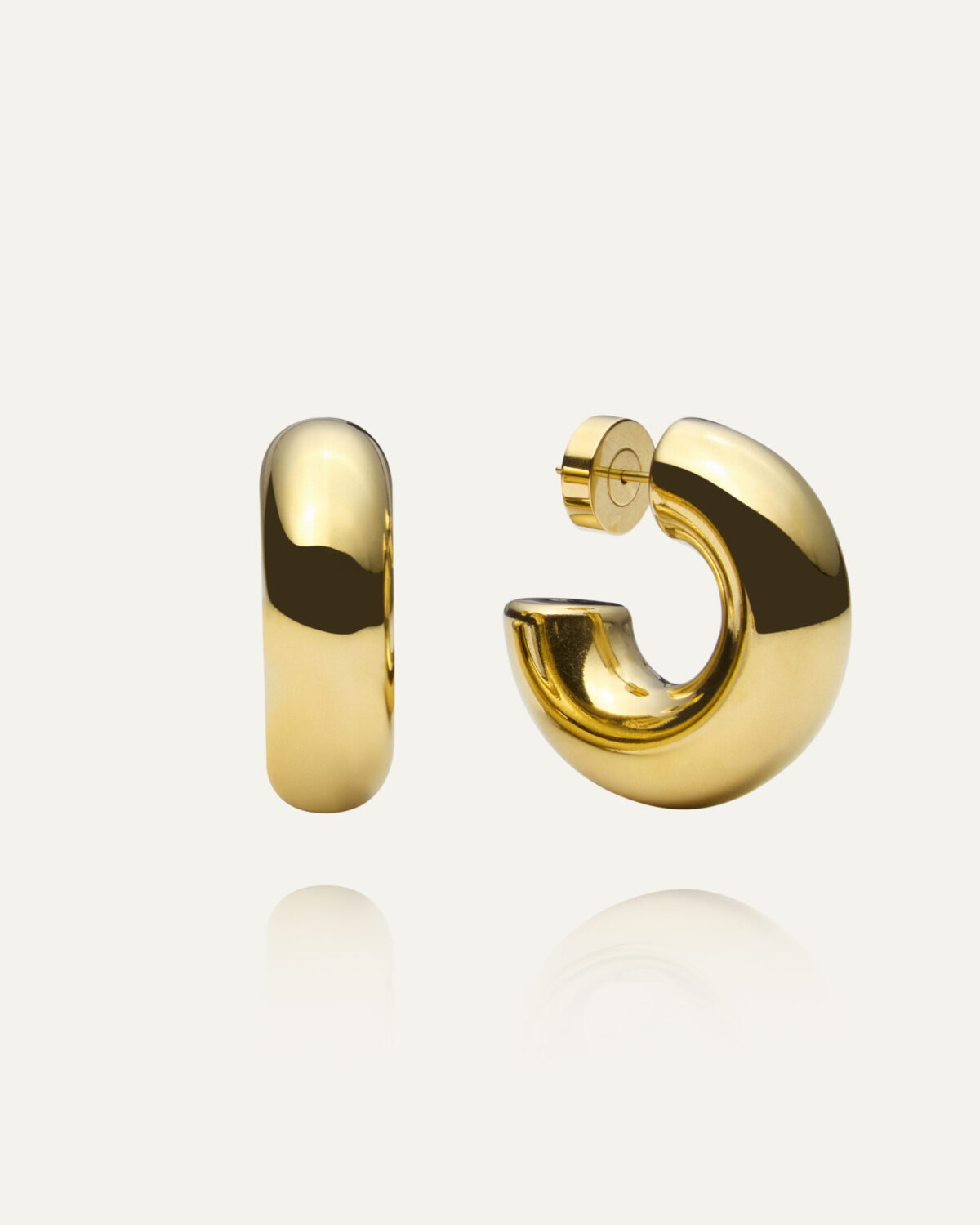 Rude Bold Earrings är designade för att du ska göra ett starkt intryck. Tillverkade av stål med en lyxig guldplädering och skyddade av en hållbar PVD-coating, kombinerar dessa örhängen slitstyrka med sofistikerad stil. De är även vattentåliga, vilket gör dem idealiska för aktiv användning utan att kompromissa med elegansen. Med en höjd på 32 mm och en omisskännlig form, fångar de blickar och tillför en unik karaktär till varje outfit. Perfekta för den stilmedvetna kvinnan som söker ett smycke som kan bäras med komfort både till vardags och under speciella tillfällen.