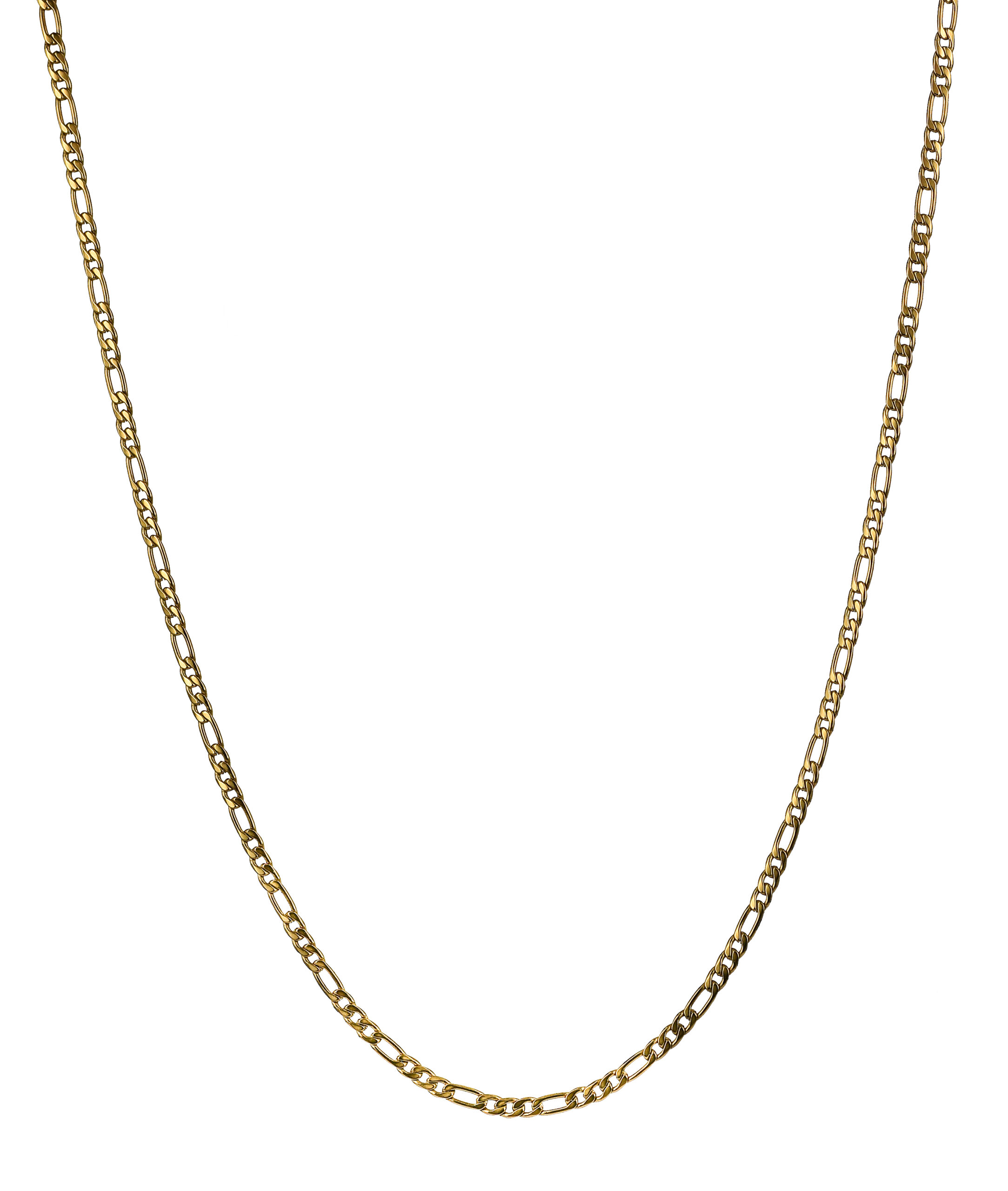 Kort halsband av en Figaro länk i 14 karat guldpläterat kirurgiskt rostfritt stål. Polerad finish.