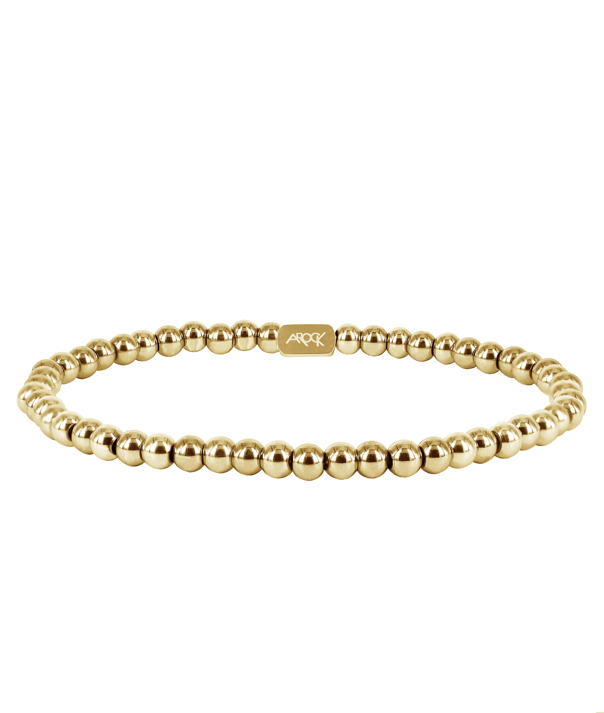Elastiskt kularmband i kirurgiskt rostfritt stål med 14 karat guldplätering.