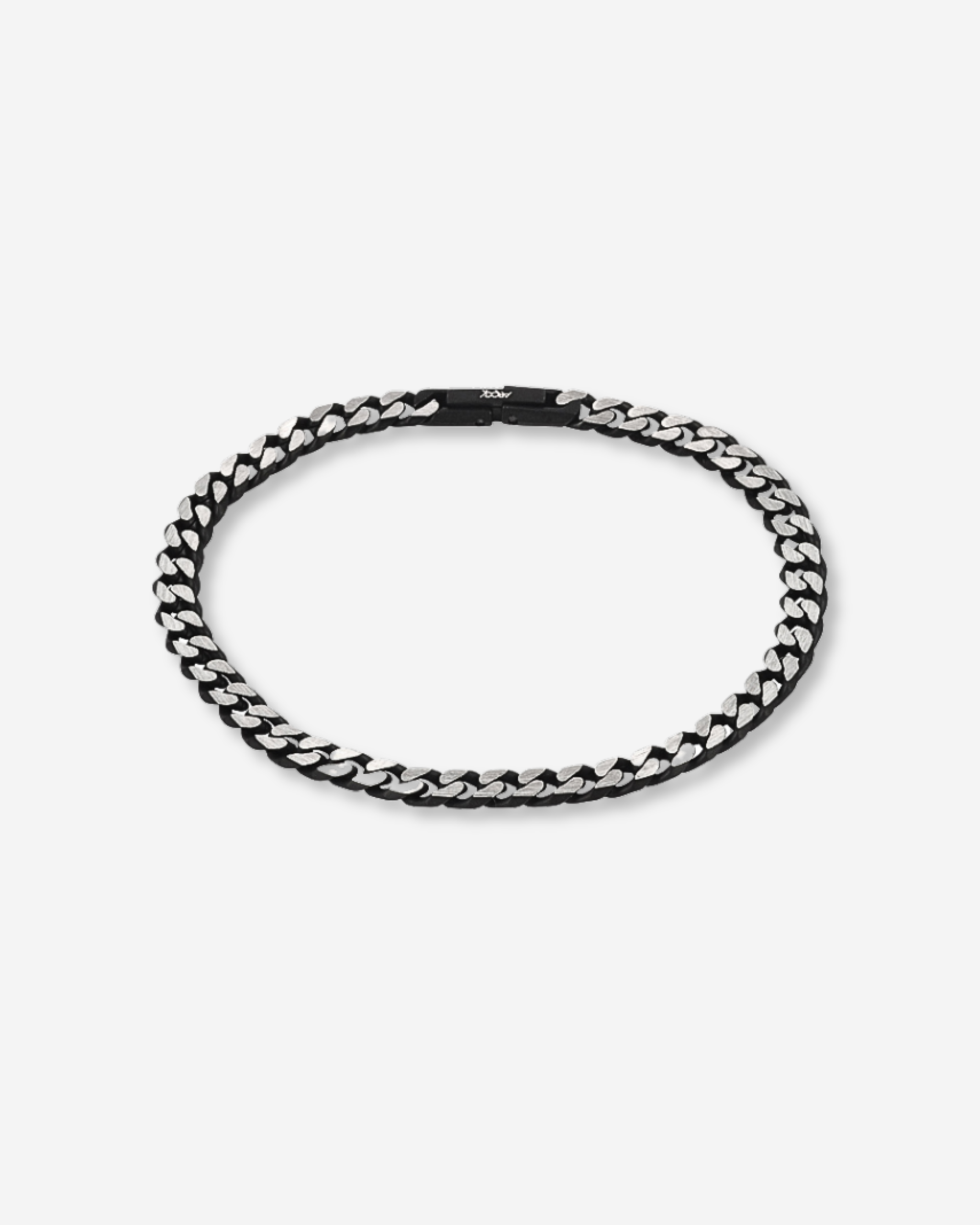 Pansarlänk tillverkat av kirurgiskt rostfritt stål med en svart TiCN-plätering (Titanium Carbonitride) på sidorna. Matt finish.