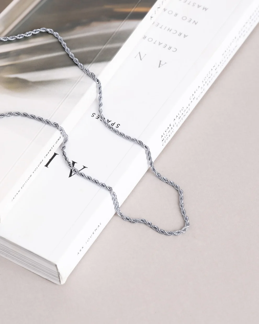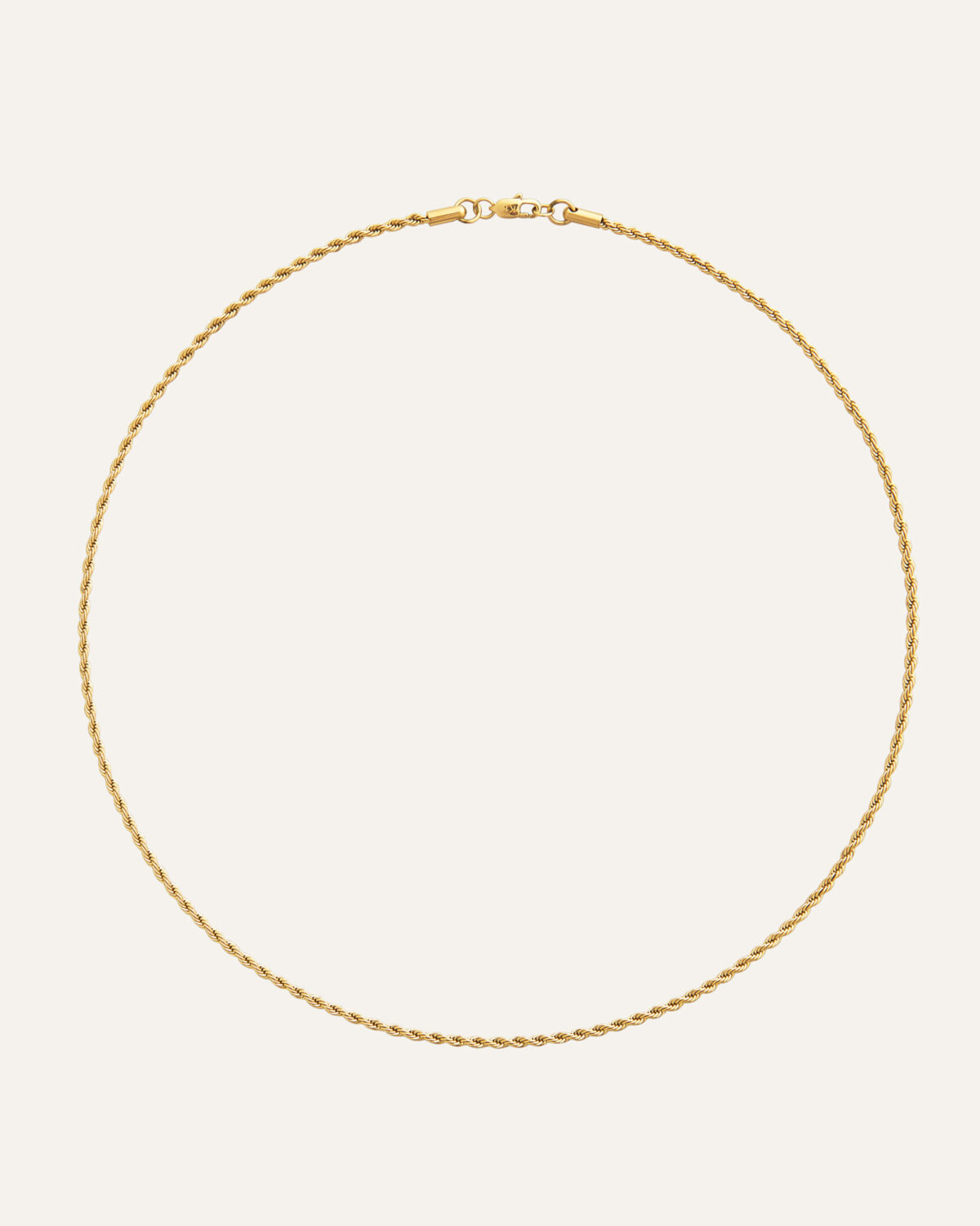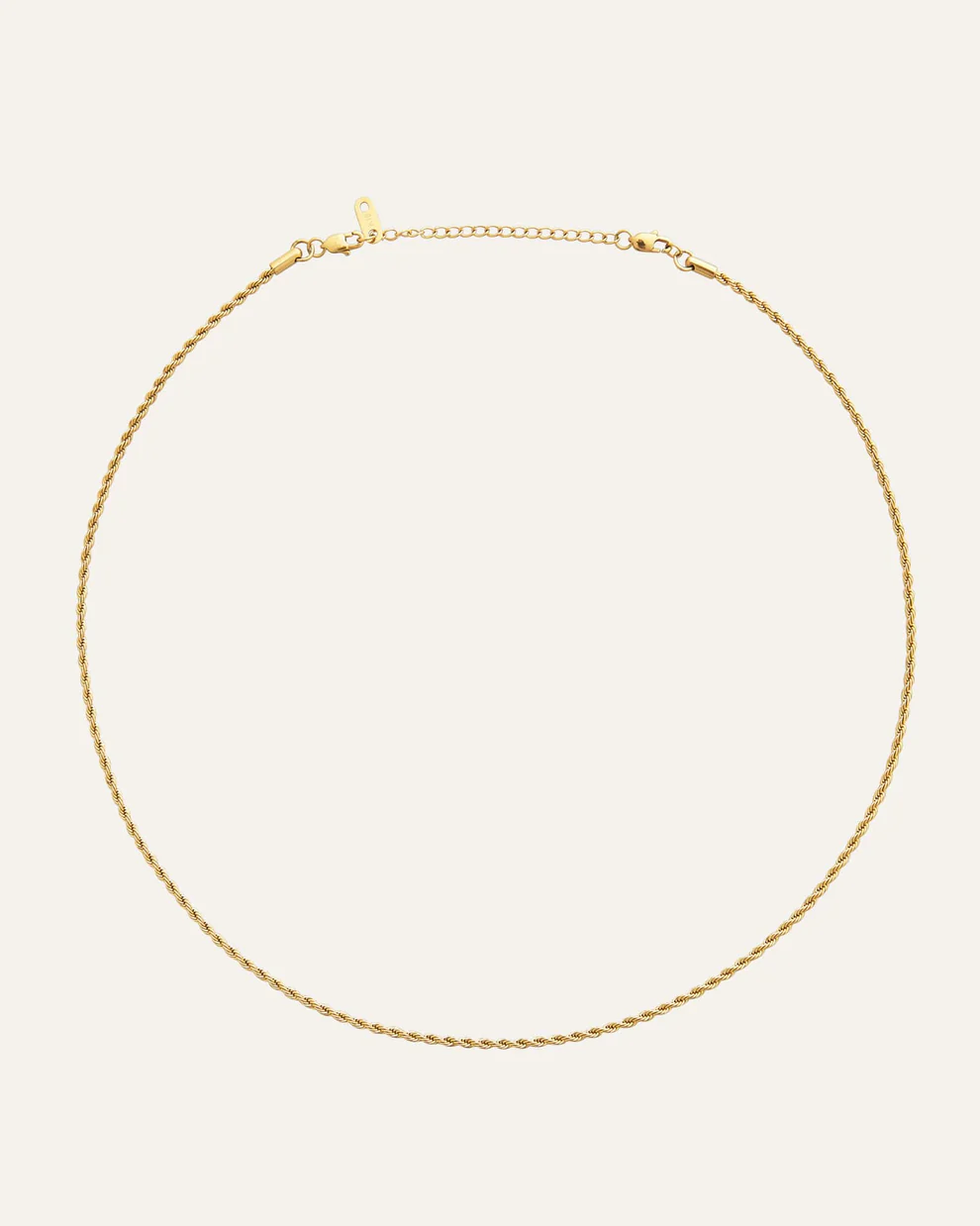 Det här vackra halsbandet har formen av ett tunt rep. Designen är klassisk och minimalistisk och passa till allt. Kedjan är tillverkad i massivt rostfritt stål vilket gör det mycket slitstark och dessutom vattentåligt. Bada, duscha och träna i detta smycke utan att oroa dig för att det ska tappa färg. Förlängningskedjan går att ta av om man önskar.