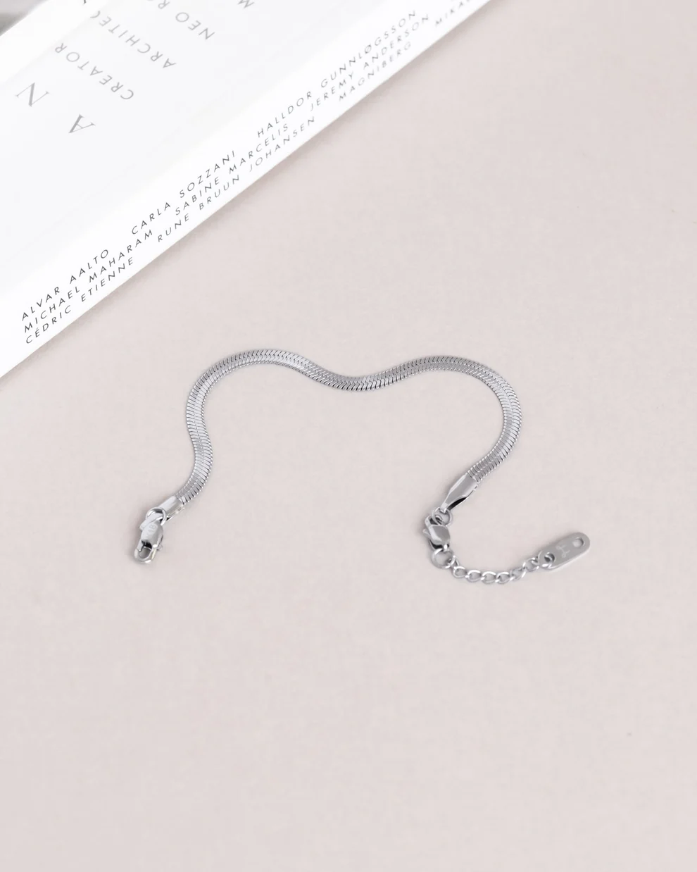 Skin lite extra med detta eleganta snake armband. Matchar perfekt med snake halsbandet i samma kollektion. Kedjan är tillverkad i massivt rostfritt stål vilket gör det mycket slitstark och dessutom vattentåligt. Bada, duscha och träna i detta smycke utan att oroa dig för att det ska tappa färg. Förlängningskedjan går att ta av om man önskar.