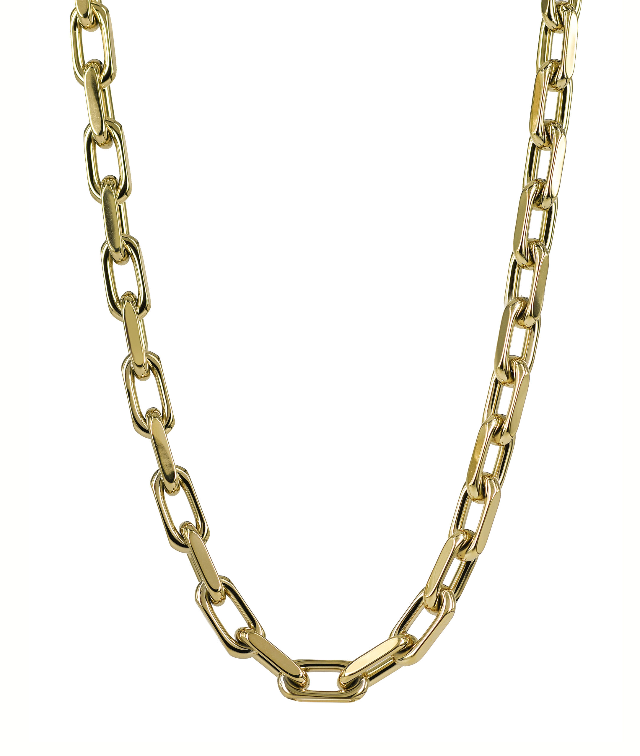 Länk med rektangulära ringar i 14 karat guldpläterat kirurgiskt rostfritt stål. Polerad finish.