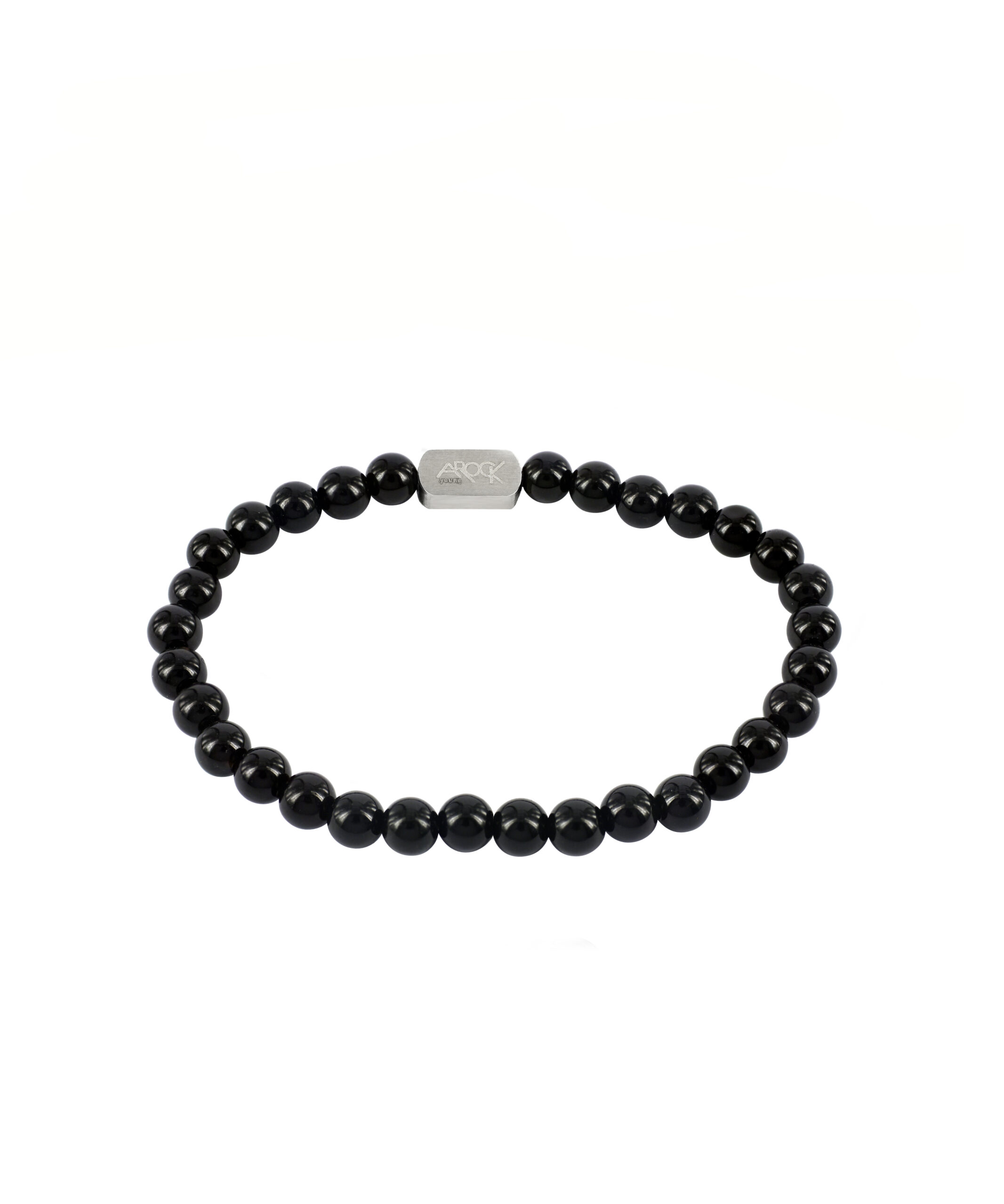 Ebbe armband från AROCK.young är ett kularmband av ädelstenen Onyx, med detaljer av kirurgiskt rostfritt stål. Armbandet är 14 cm långt och elastiskt. Alla smycken levereras i en fin ask, redo att ge bort som gåva.